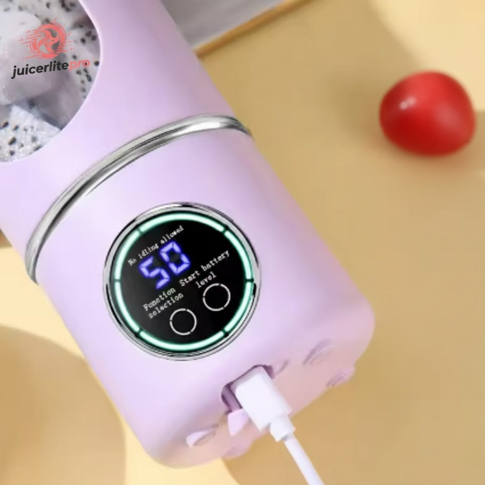 This image highlights the convenience of a modern portable blender equipped with a clear digital display. You can easily check blending time, power level, and operating mode at a glance, making every use simple and effortless. The compact design and USB charging port ensure you can blend anywhere without interruptions. It’s a perfect blend of smart technology and everyday practicality, giving you smooth results whenever you need them.